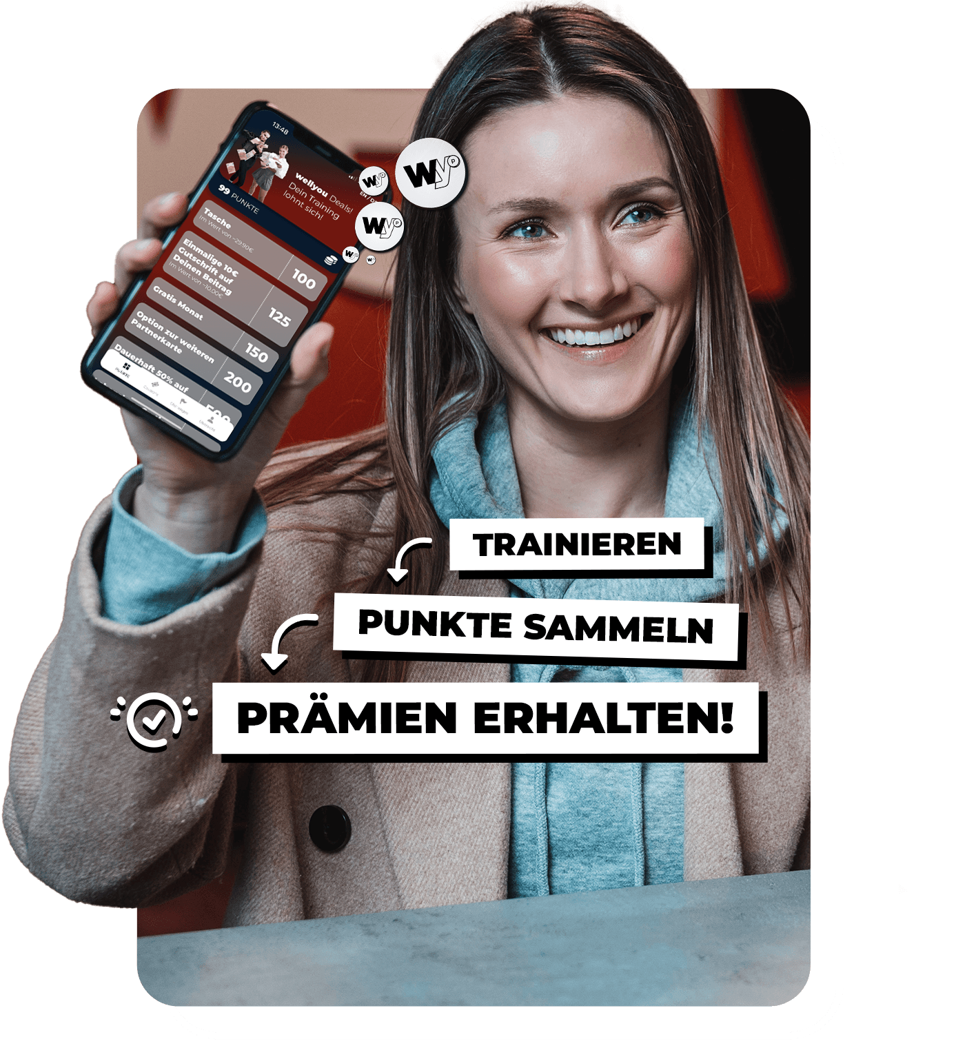 Dein Training lohnt sich jetzt doppelt! Mit jedem Besuch in Deinem wellyou-Studio sammelst Du mit unserer kostenlosen wellyou Deals App wertvolle Punkte, die Du in tolle Prämien eintauschen kannst. Ob stylisches Merchandise, praktische Fitness-Gadgets oder sogar Gratis-Training und dauerhaft reduzierte Beiträge – Du allein entscheidest, wie Du Deine hart trainierten Punkte einlösen möchtest!